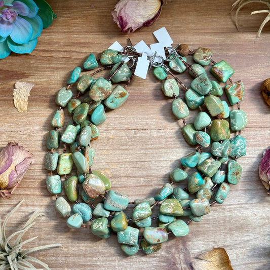 Green Turquoise Nugget Bracelet with Sterling Silver Pearls – 7” + Extender