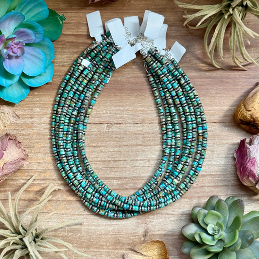 14” Turquoise Heishi & Sterling Silver Saucer Necklace – The Bijoux FAB
