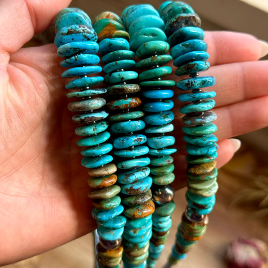 15” Variscite Turquoise Heishi Necklace – 4mm Silver Plated beads