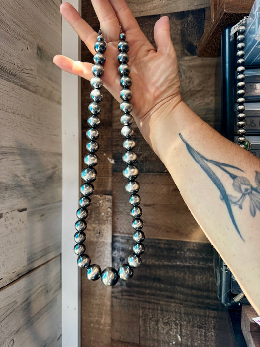 Sterling Silver Pearl Necklace – Mixed Sizes – 23"
