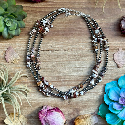 16.5” Palomino Turquoise Necklace – Sterling Silver Pearls