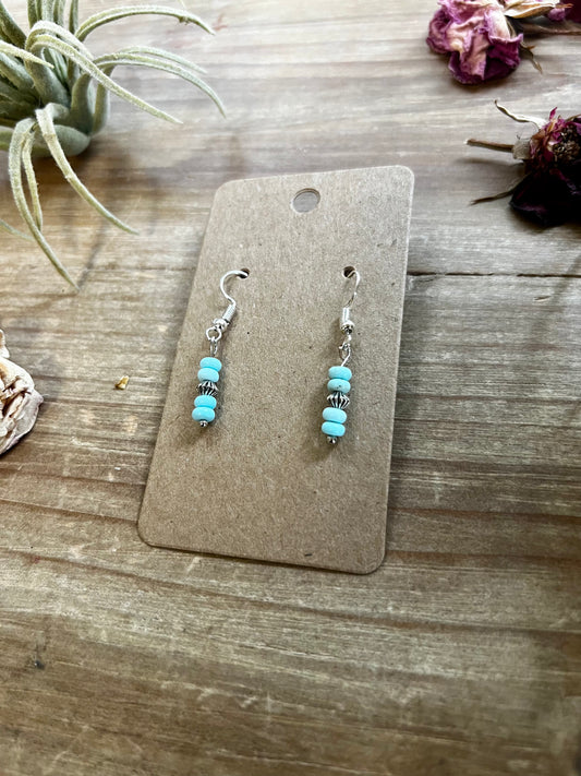 3 mm teardrop earrings Sterling Silver pearls with blue turquoise nuggets