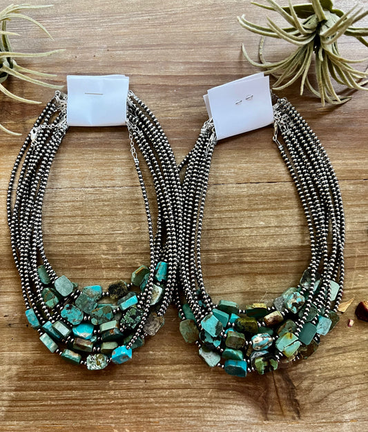 22 inch graduated turquoise necklace with Sterling silver pearls