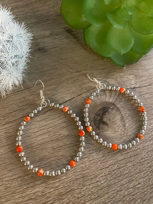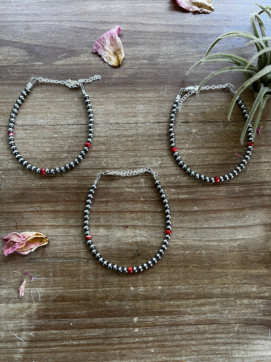 Little bit of orange spiny with Sterling Silver Pearls bracelet