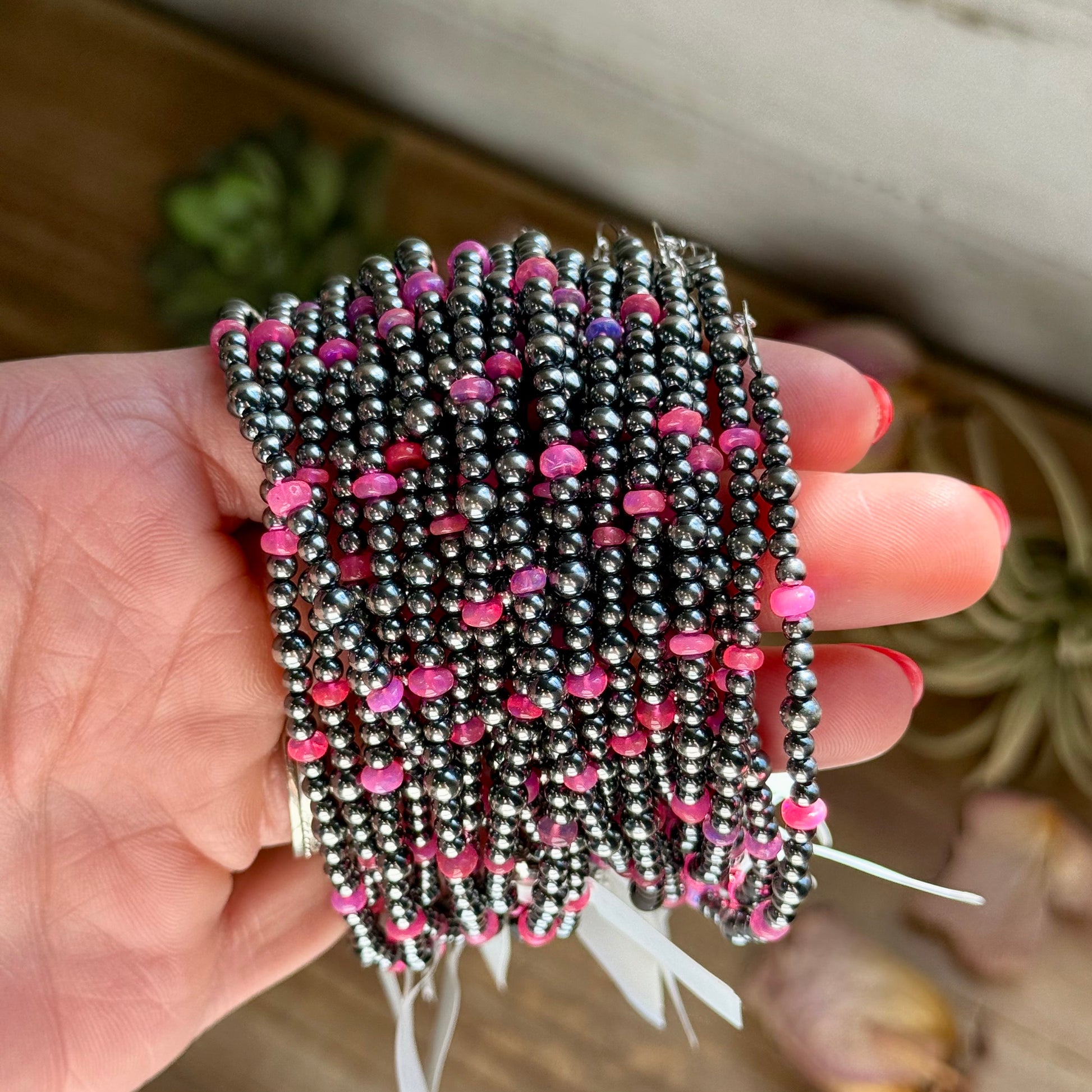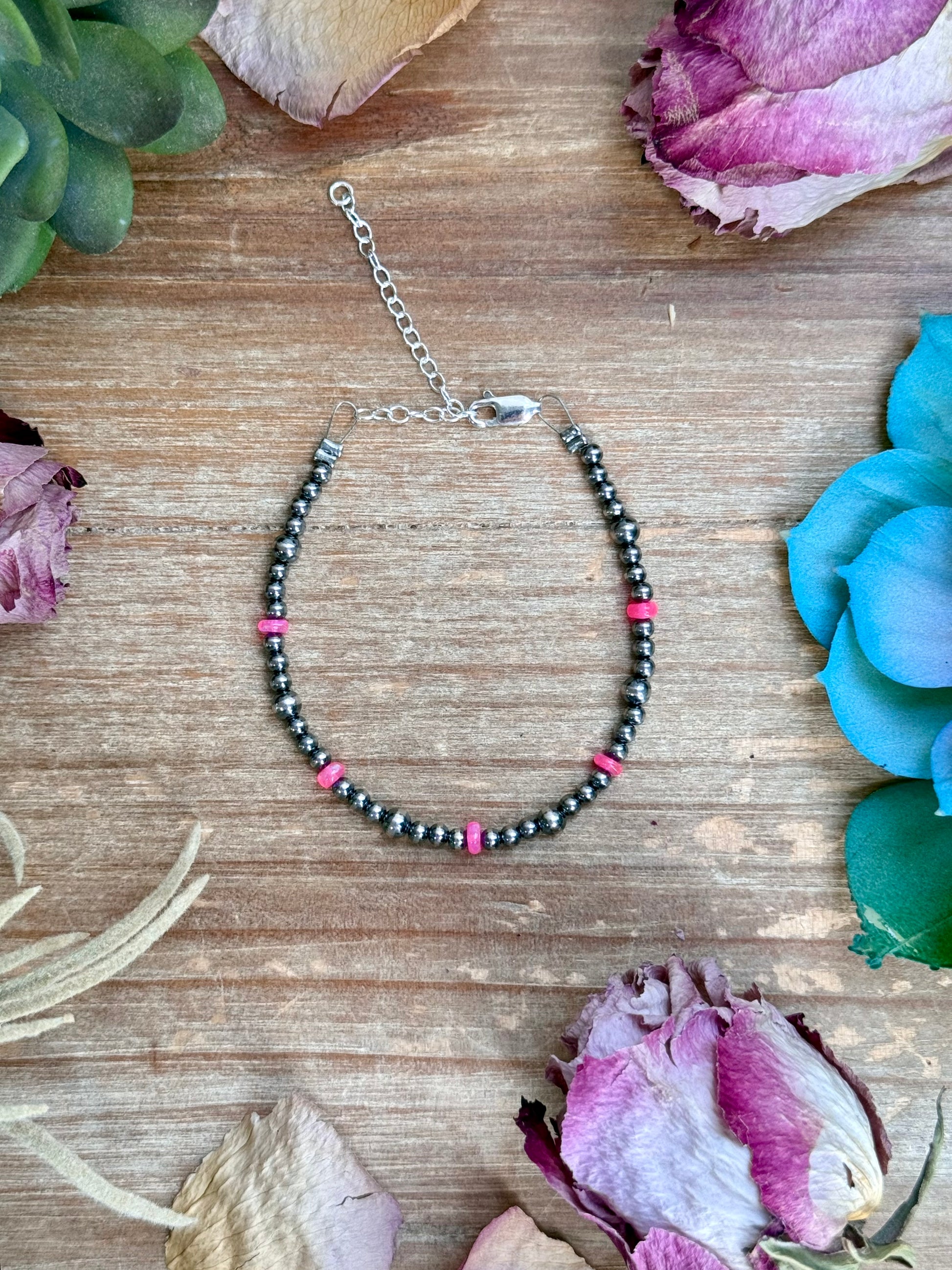 Pink Ethiopian Opal Bracelet – 3–4mm Sterling Silver Pearls
