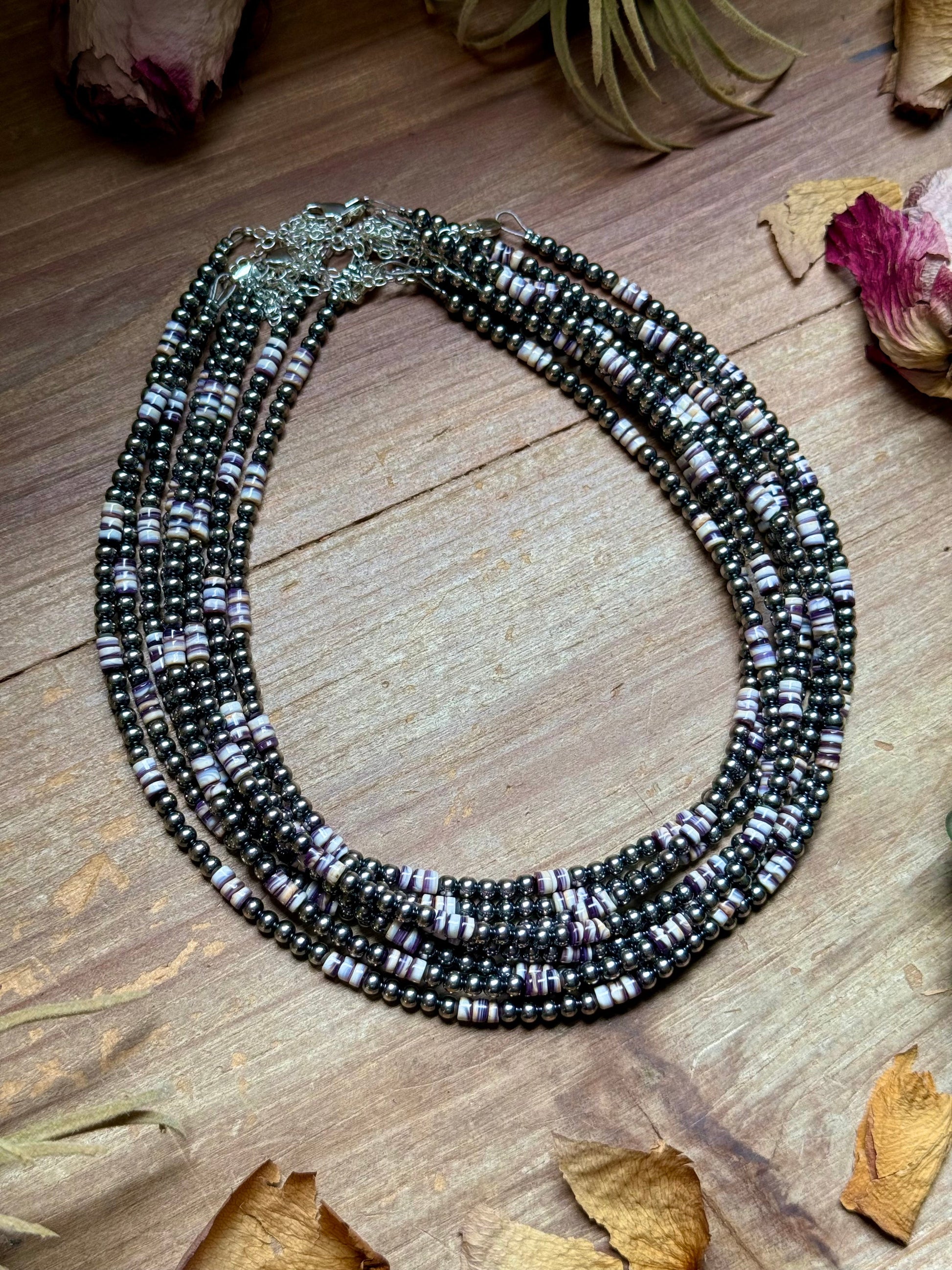 Made with 4mm sterling silver pearls paired with 4mm wampum shell, the natural mix of purple and white tones gives it that fresh, elevated look your customers don’t already have.